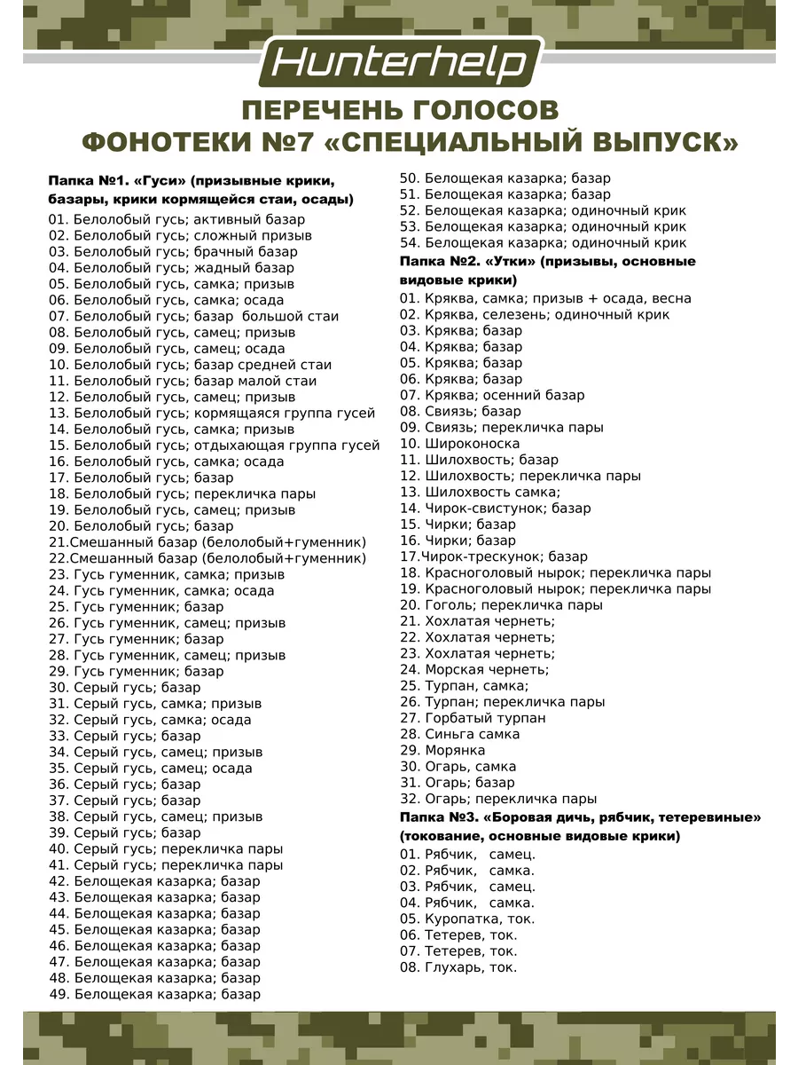 Папка №2. «Утки» 32 голоса (призывы, основные