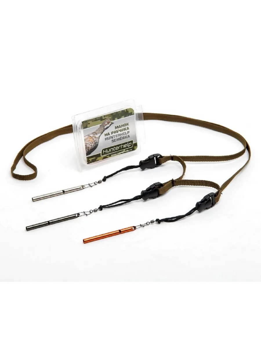 Для удобства использования, манки имеют цветовую маркировку. Манок оранжевого цвета имеет высокую тональность. Серебристого – среднюю (такой же по настройке, как Hunterhelp SEMERKA). Черный манок – низкий, для имитации самки рябчика.