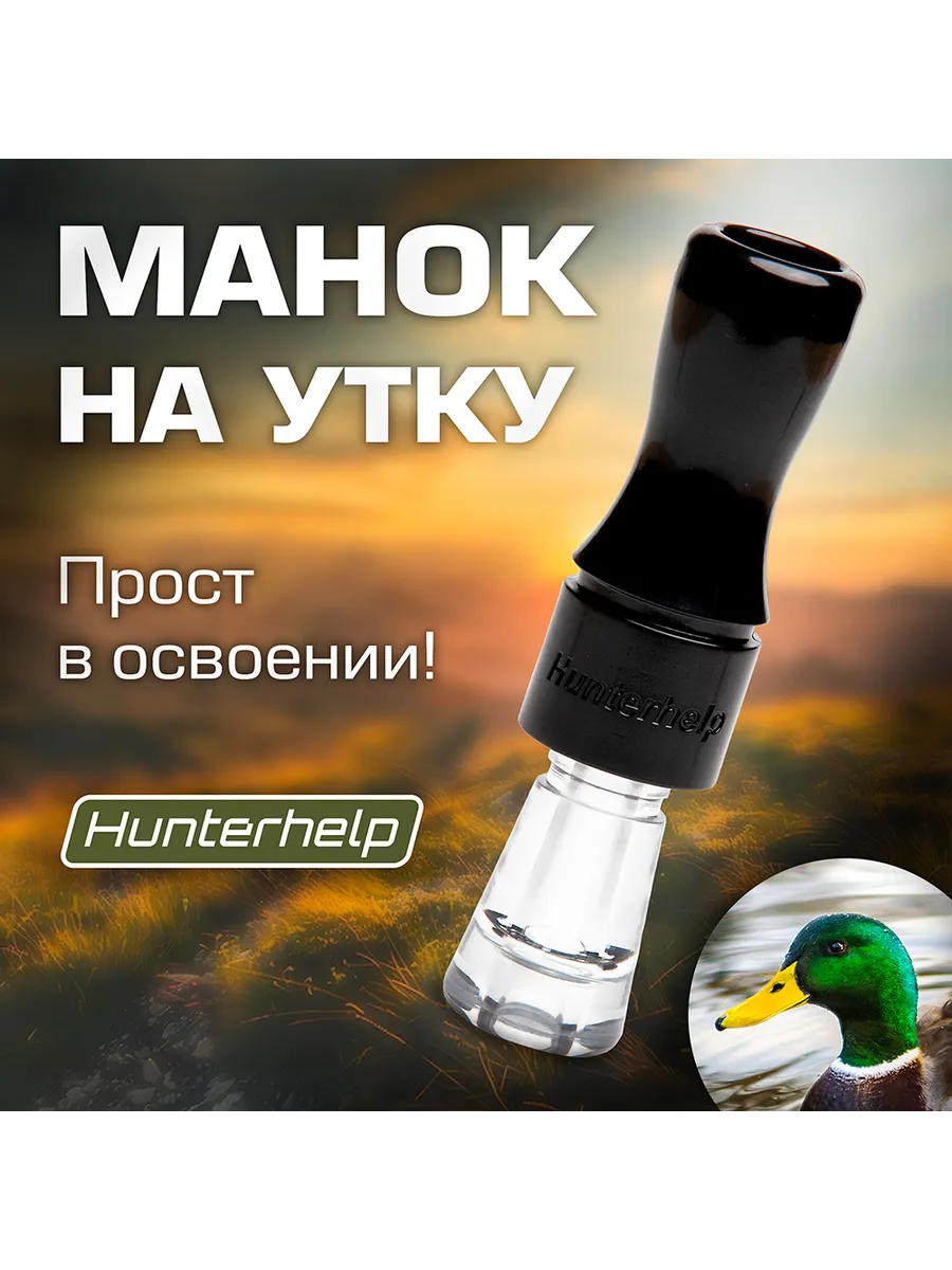 Духовой манок на утку Hunterhelp двух язычковый, серия "Утиный Мастер". Настройка — кряковая утка. Материал-поликарбонат. Форма -конус. Отличительной особенностью манка является лёгкий выдув, что очень поможет начинающим охотникам.