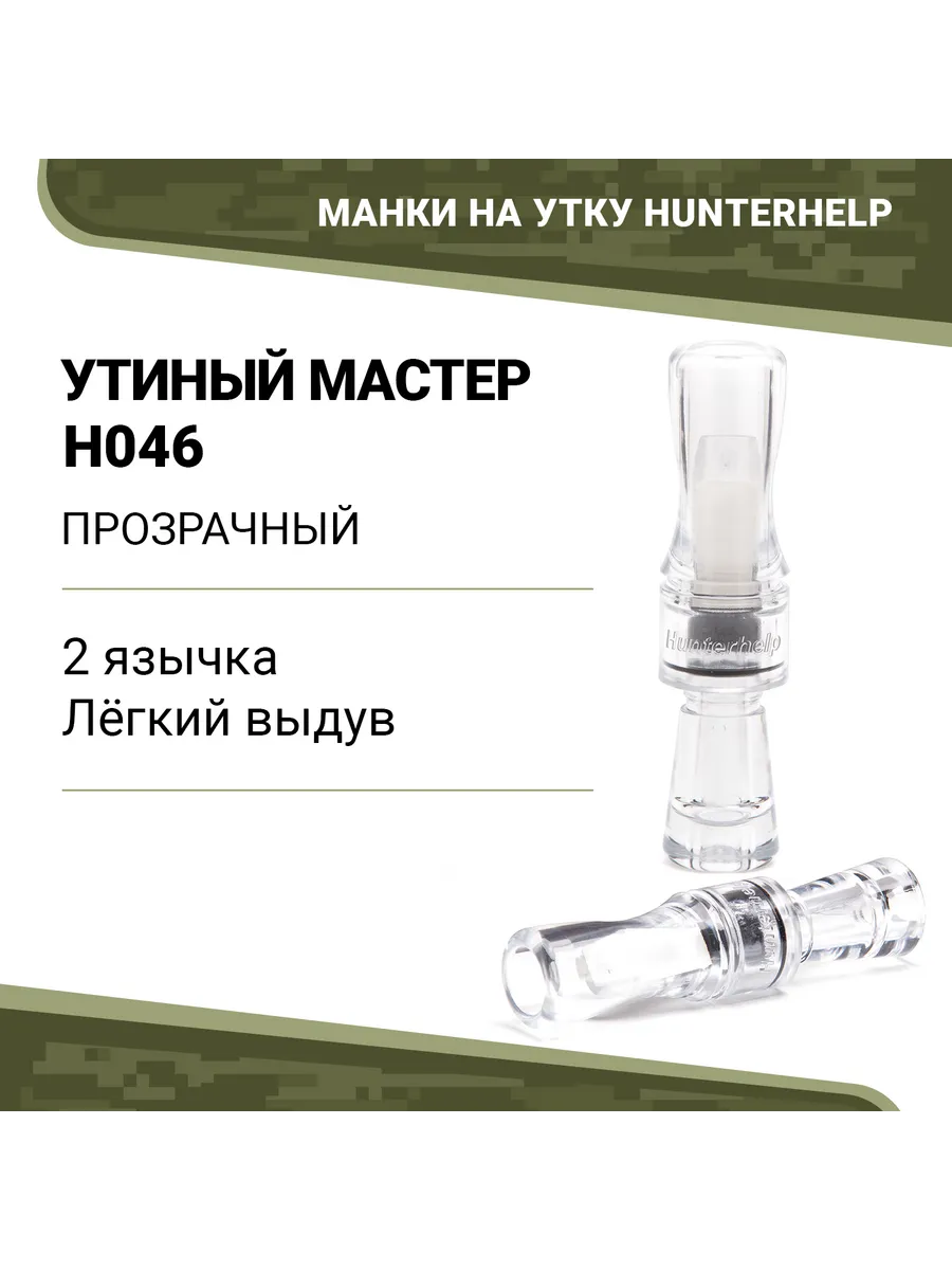 Духовой манок на утку Hunterhelp двух язычковый, серия "Утиный Мастер". Настройка — кряковая утка. Материал-поликарбонат. Форма -конус. Отличительной особенностью манка является лёгкий выдув, что очень поможет начинающим охотникам.