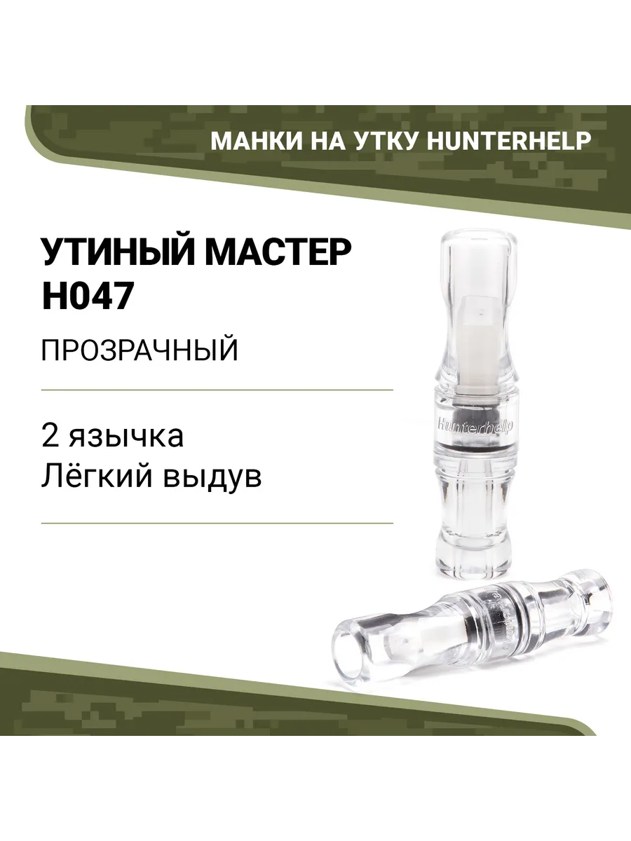 Духовой манок на утку Hunterhelp двух язычковый, серия "Утиный Мастер". Настройка — кряковая утка. Материал-поликарбонат. Форма - бочка. Отличительной особенностью манка является лёгкий выдув, что очень поможет начинающим охотникам.