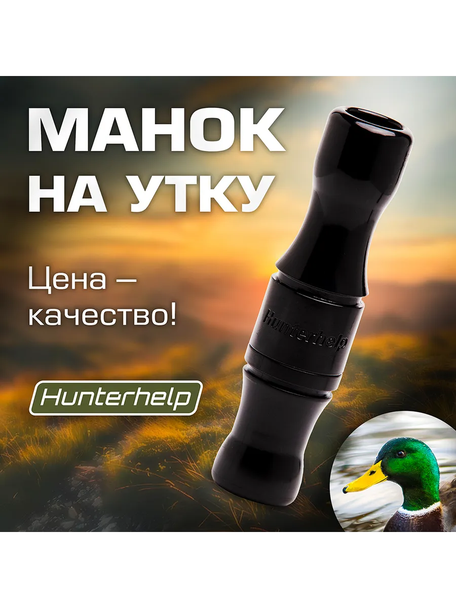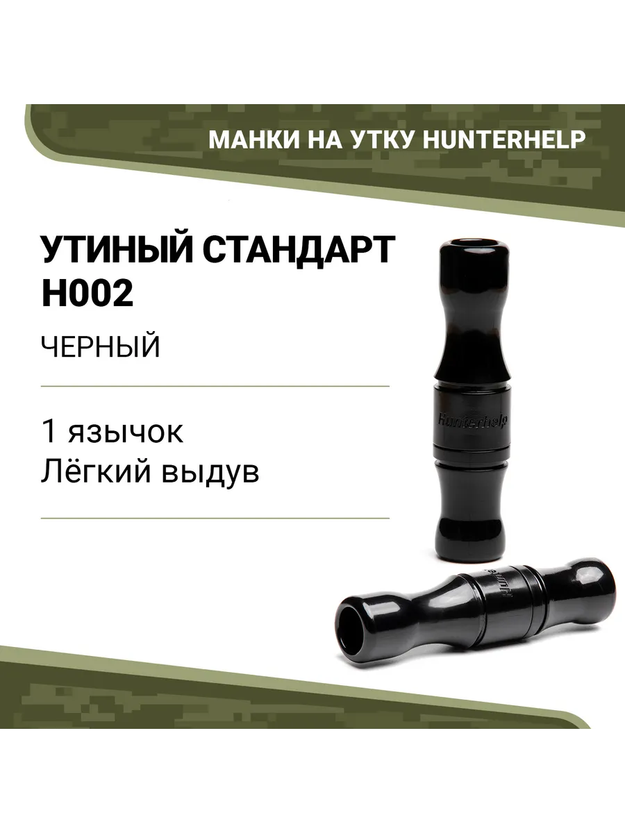 Духовой манок на утку Hunterhelp одноязычковый, серия Утиный Стандарт Настройка — кряковая утка. Материал корпуса АБС. Форма - бочка.