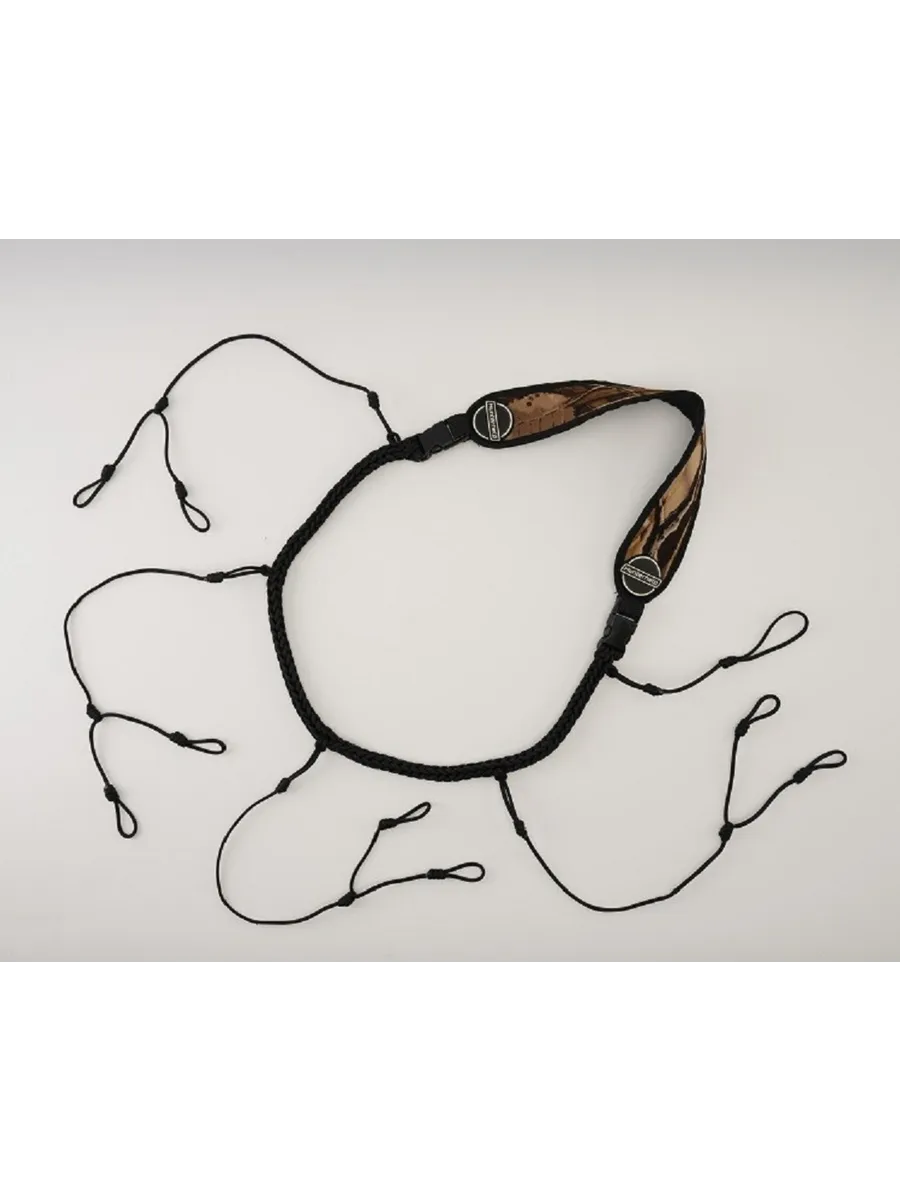 Новая конструкция 2018 года! Практичный, удобный подвес на 5 духовых манков. Подвес состоит из двух частей: неопренового ремешка и плетеного шнурка с креплениями для манков в виде удавки. Для подвеса 4 манков предусмотрено две петли. Одиночная петля предусмотрена для подвеса духового манка с одной точкой крепления